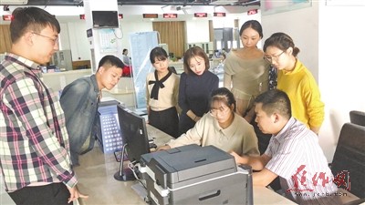 为确保群众和企业人员在申请材料齐全、符合法定受理条件的情况下,工作人员从受理申请到送达办理结果“一窗受理、一次办妥”,9月25日,示范区行政服务中心正式开展“一次办妥”试运行工作。图为9月24日,该中心工作人员在进行网上流程操作测试。